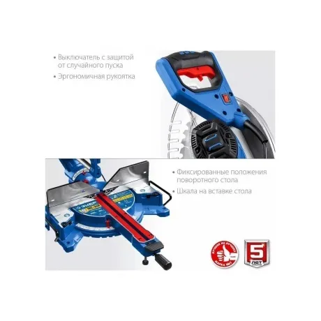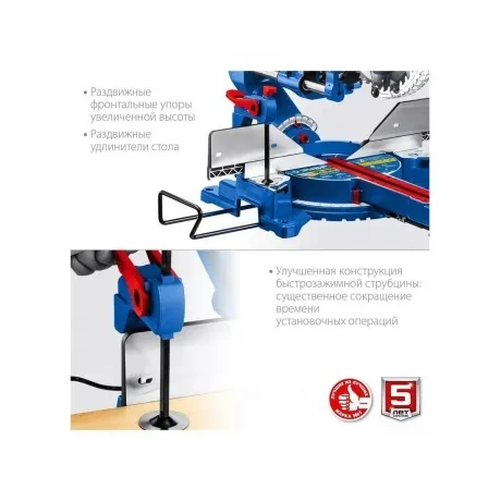 Если Вам нужна точность из коробки - это не про данную пилу. Без регулировки стесала пластиковый указатель и оформила не ровный угол на изделии. Даже после получасовой калибровки, уходит в сторону на 1мм и делает пил не 90°. Пострадала краска при производстве или транспортировке - есть сколы краски на разных участках корпуса пилы. Я бы рекомендовал добавить производителю резиновые подпорки на основание. В комплекте идёт одна струбцина - это здорово, что придумали её туда положить, но отверстий для струбцины - два, соответственно заготовка будет зажата только с одной стороны. Пока первые впечатления такие. Больше обидно за точность.