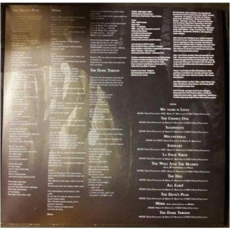 Лицензионное издание, выпущенное на виниле. Содержание: My Name Is Luna, The Chosen One, Illuminate, Melancholia, Iceheart La Folie Verte, The Wolf And The Maiden, The Hex, All Ears!, The Devils Peak, M?rk, The Dark Throne