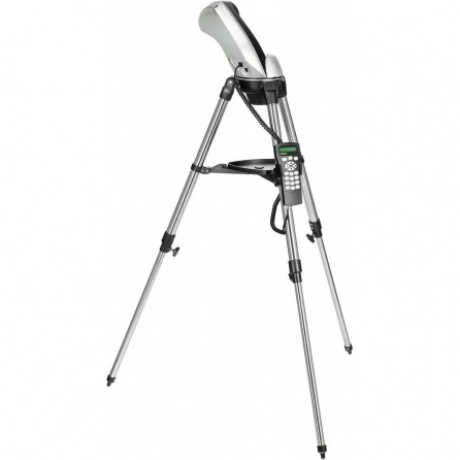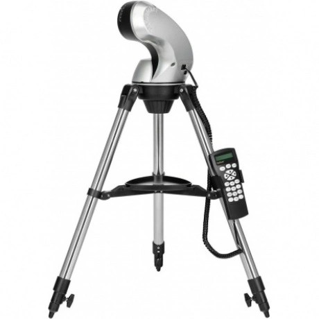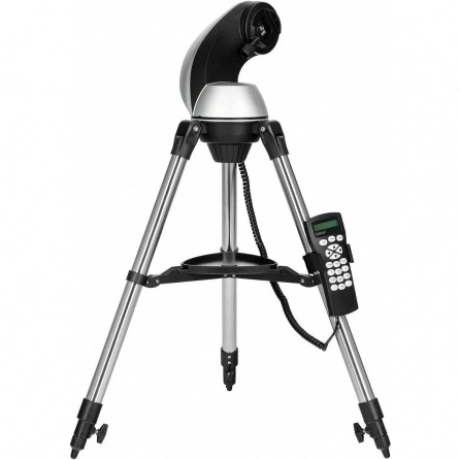Азимутальная монтировка Sky-Watcher AZGT на треноге SLT – незаменимый инструмент, который пригодится астрономам любого пользовательского уровня и поможет быстро и эффективно изучать просторы Вселенной. Основная особенность монтировки – встроенная система автоматического наведения SynScan GOTO, имеющая в своей базе данных 42900+ координат небесных тел (список составлен на основе 9 астрономических каталогов: Мессье, NGC, IC, SAO, Колдуэлл, Двойные звезды, Переменные звезды, Именные звезды, Планеты). Пользоваться возможностями системы просто: необходимо выбрать нужное наименование из списка при помощи ручного контроллера SynScan, а затем дождаться, пока система завершит процесс наведения на объект.