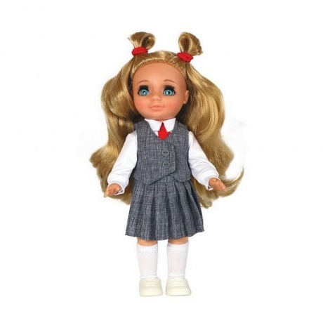 Кукла-школьница отлично подойдёт на подарок или сувенир для дошкольников, будущих первоклассников, школьников начальной школы, педагогов и учителей. Кукла представлены в современной школьной форме, именно в ней ученики чувствуют себя более взрослыми, собранными, лучше настраиваются на учебную деятельность. Комплект одежды Аси первоклассницы 1 включает в себя: серый жилет на пуговицах и юбочка, белая рубашка с воротником и длинным рукавом, красный галстук, белые гольфы, трусики, виниловые кроссовки. Образ дополняет вместительный красный рюкзак на молнии. Технические характеристики кукол:. Рост куклы - 26 см. Небольшой и удобный размер для того, чтобы сложить игрушку в рюкзачок и отправиться с ней в увлекательный мир знаний. Кукла полностью выполнена из качественного, безопасного и приятного на ощупь материала – винила. Ручки и ножки подвижные - можно усаживать и ставить в различные позы для фотосессий. Волосы куклы густые, длинные и шелковистые, словно настоящие. Образ школьницы дополнен двумя озорными хвостиками-ушками, которые в процессе игры можно переплести или придумать новую прическу кукле. Глаза куклы вставные закрывающиеся разнообразят сюжетно-ролевую игру с ней. Игрушка соответствует Техническому регламенту Таможенного союза «О безопасности детской игрушки».