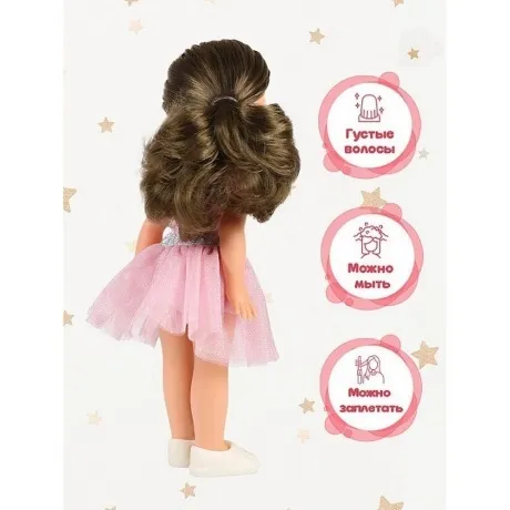 Кукла Эля Модница 4 предстала в легком летнем образе. Ее милый образ девочки с длинными, блестящими волосами и в модной одежде придется по душе вашим детям. В комплект одежды входит: легкое платье с сетчатой юбкой и рукавами-крылышками, на верхней части расмещена бабочка. Комплект дополняют трусики и белые кроссовки. Игровые возможности куклы: наличие элементов одежды, которые легко снимаются и надеваются, разнообразит возможности сюжетно-ролевых игр с этой куклой, в процессе которых развивается мелкая моторика и творческое воображение ребёнка. Прекрасные прошитые волосы из качественного нейлона, похожие на натуральные, можно завивать, расчёсывать, укладывать в разные причёски, меняя образ куклы. Рост куклы 30см. Кукла Эля не озвучена. Глаза вставные закрывающиеся. Цвет глаз может варьироваться. Ручки и голова выполнены из эластичного, приятного на ощупь винила, а туловище и ноги из пластмассы. Соответствует Техническому регламенту Таможенного Союза о безопасности игрушки.