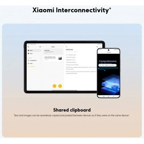 Планшет Xiaomi POCO Pad 8/256 предлагает высокую производительность и энергоэффективность благодаря ультрасовременному флагманскому 4-нм процессору. Это позволяет легко справляться с несколькими задачами одновременно, будь то мультимедийные или игровые.