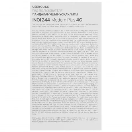 Описание товара Мобильный телефон INOI 244 Modern Plus 4G Black