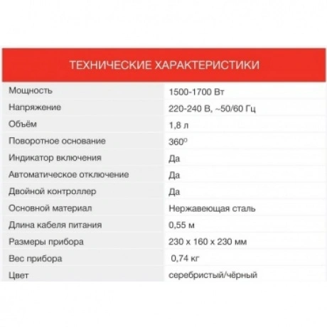 Чайник Starwind SKS1053 – незаменимый помощник на вашем кухонном пространстве. Эта бытовая техника рассчитана на семью из двух-трех человек, позволяет разогреть питьевую воду за несколько минут. Электрический чайник обладает мощностью около 1500 Ватт, а объем предусмотренного резервуара составляет 1.8 литра. Устройство оснащается нагревательным элементом скрытого вида, выполнено в сером цвете с черными вставками. Корпус чайника производится на основе нержавейки и прочного пластика. Круглая подставка дает возможность разворачивать его на 360 градусов.
