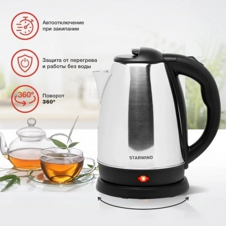 Чайник электрический StarWind SKS1053 - описание товара, его характеристики, фото и цены представлены на карточке товара. Чтобы купить этот товар по цене 1115 руб., свяжитесь с нами по телефону 8(495)137-52-98 в Москве, или оформите покупку через корзину.