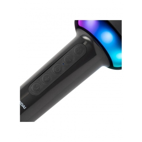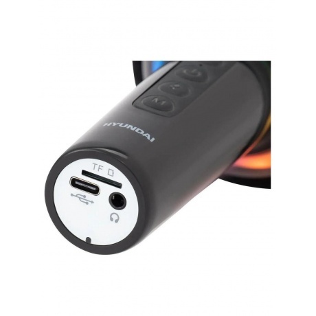 Микрофон Hyundai H-MIC100 черного цвета предназначен для караоке и домашних выступлений. Он поддерживает Bluetooth, имеет разъемы USB Type-C и jack 3.5 мм для универсального использования. Модель работает от встроенного аккумулятора и оснащена подсветкой. Устройство удобно в использовании благодаря функции регулировки чувствительности и кнопке отключения. Слот для карты памяти microSD дает возможность воспроизводить музыку напрямую с носителя.