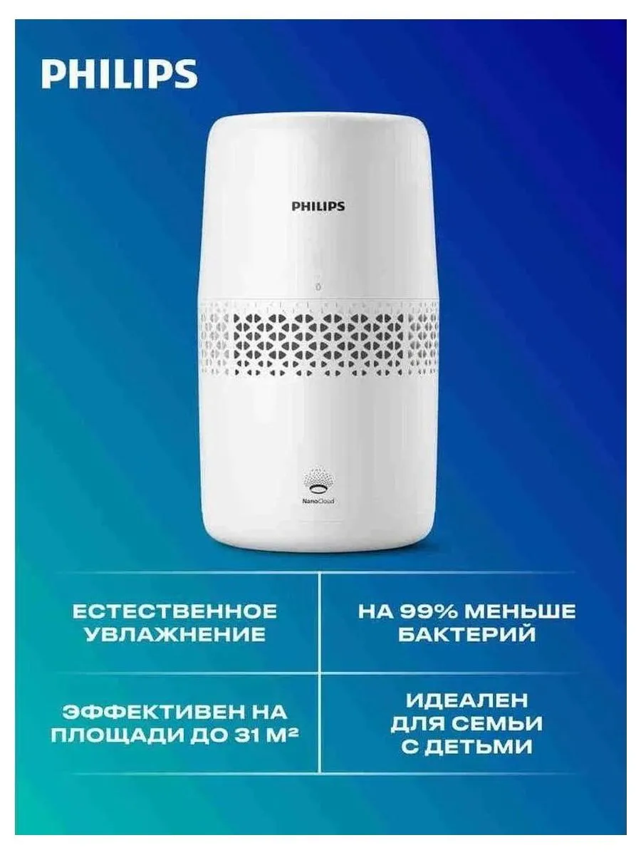 Наполните свое домашнее пространство приятным и чистым воздухом. Технология NanoCloud увлажняет воздух, не оставляя белую пыль и пятна на поверхностях, а также сокращает количество бактерий до 99% по сравнению со стандартными увлажнителями, он наполняет пространство исключительно очищенным H2O.