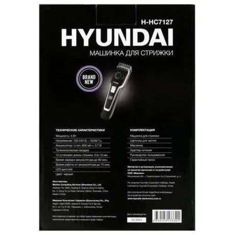 Описание товара Машинка для стрижки Hyundai H-HC7127 черная