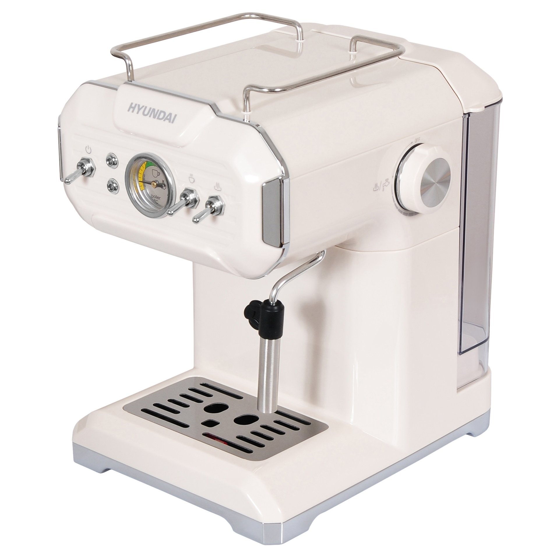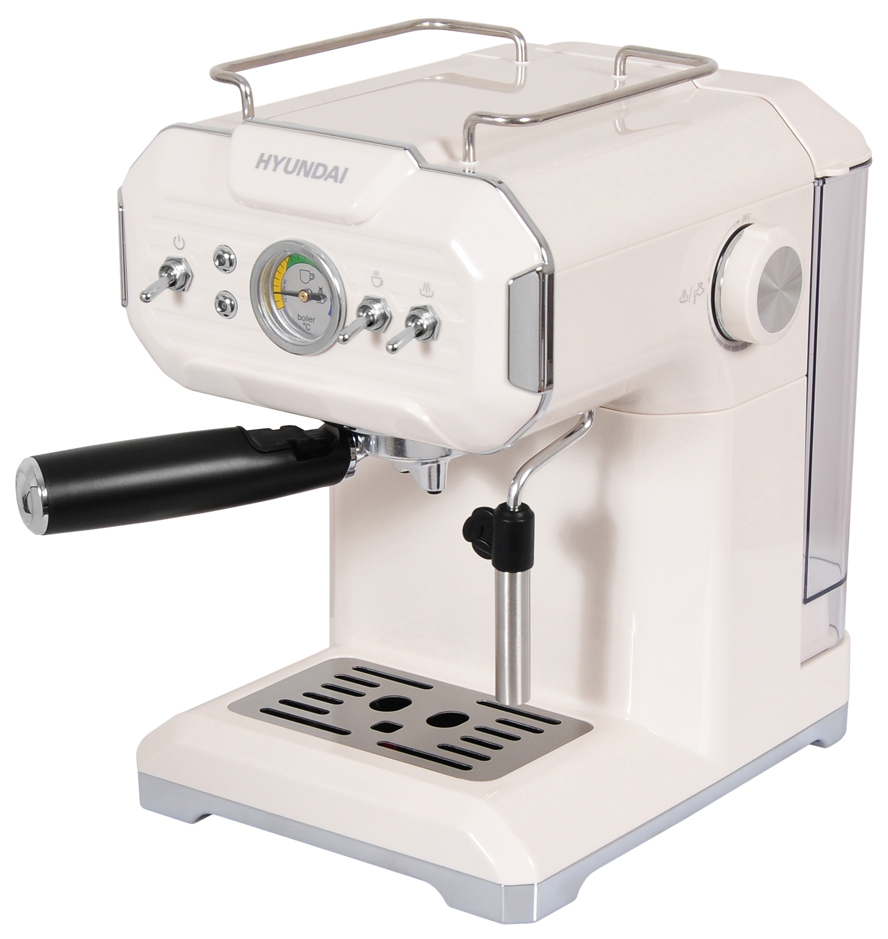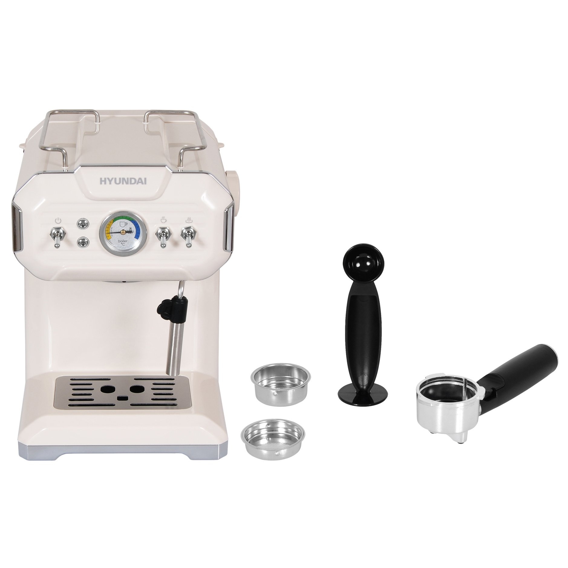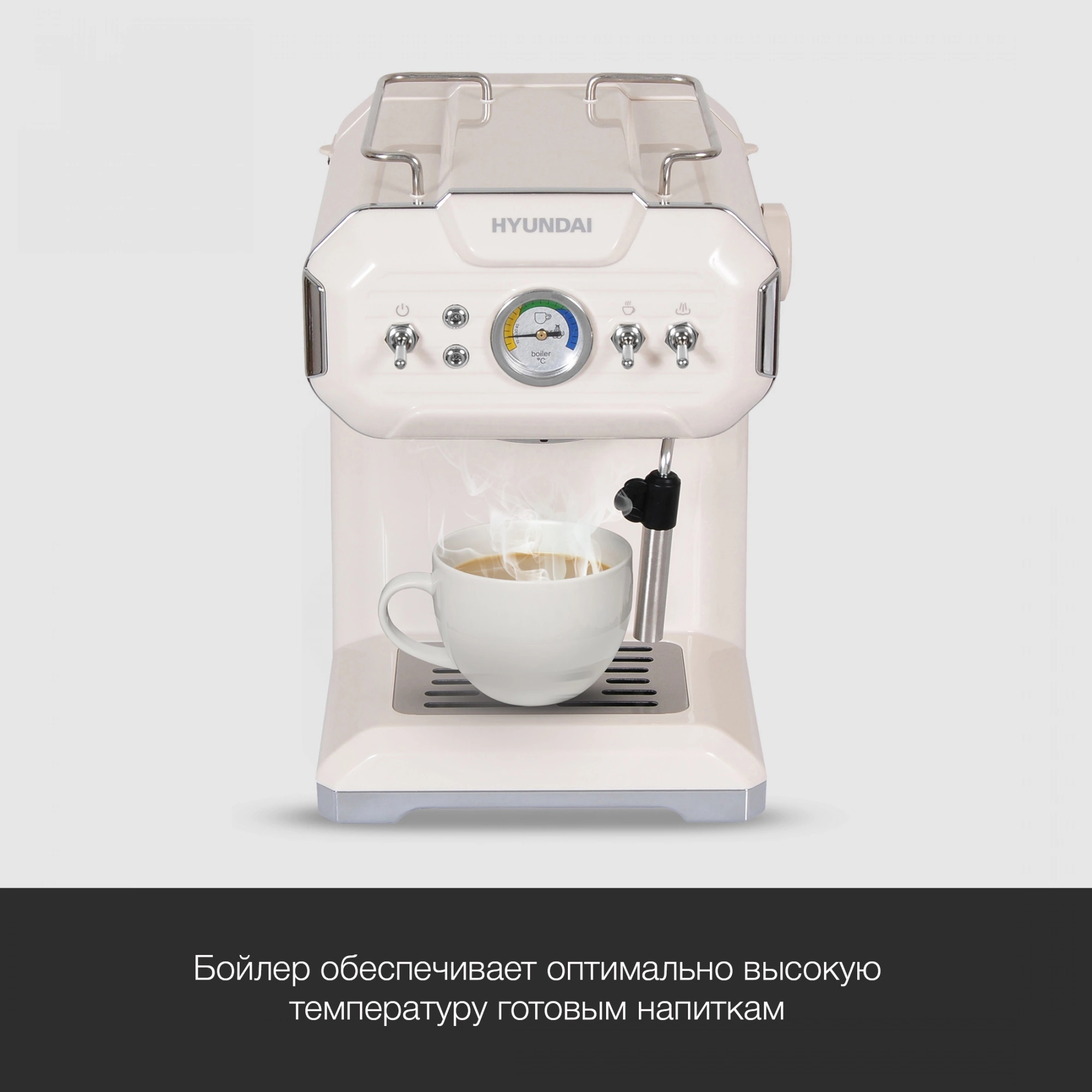 Описание товара Кофеварка рожковая Hyundai HEM-5300 850Вт бежевый/серебристый