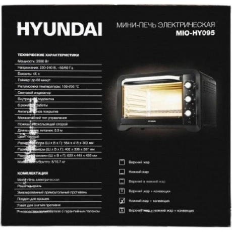 Отзывы о товаре Мини-печь Hyundai MIO-HY095 45л. 2000Вт черный