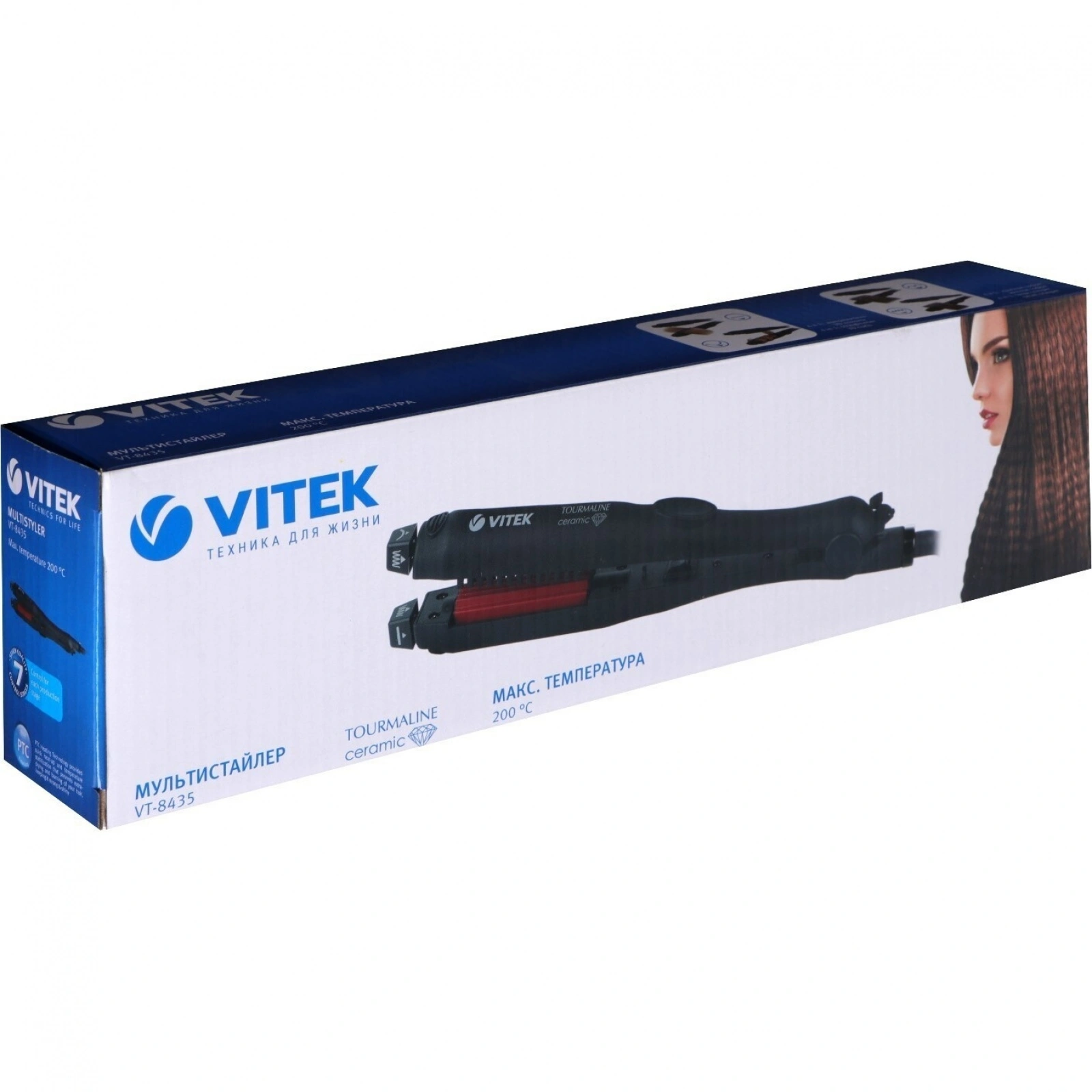 Мультистайлер Vitek VT-8435 обладает широкими функциональными возможностями, позволяя выпрямлять волосы, создавать пышные локоны разного объема и мелкое гофре. Керамическое покрытие пластин способствует равномерному распределению тепла по всей длине пряди и предотвращает повреждение волос.