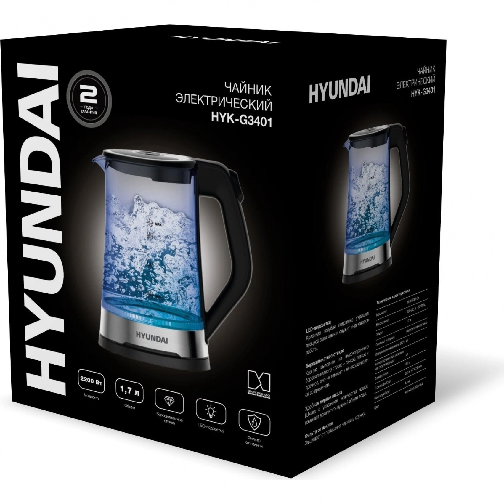 Чайник электрический Hyundai HYK-G3401 - по цене 2169 руб. в Москве. Приобрести товар можно в интернет-магазине КотоФото на сайте, либо по телефону 8(495)137-52-98 в Москве. Информация о характеристиках и описании указана в карточке товара.