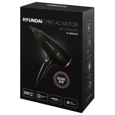 Описание товара Фен Hyundai H-HD0767 2000Вт черный