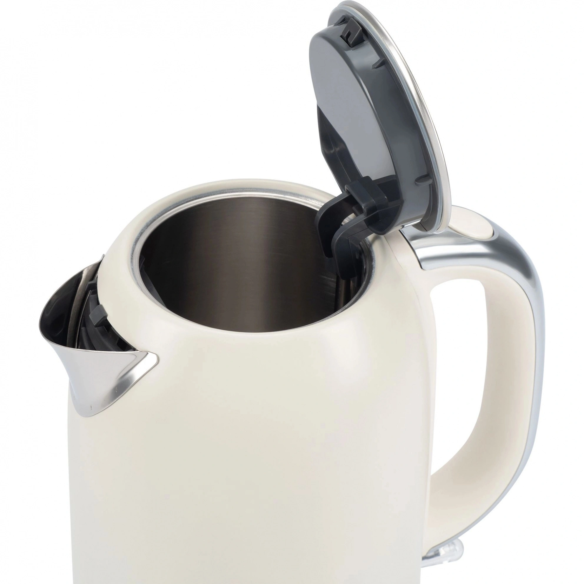 Чайник имеет лаконичный дизайн и впишется в интерьер любой кухни. Скрытый нагревательный элемент из высококачественной нержавеющей стали, наличие функций автоотключения при закипании и отсутствии воды гарантируют безопасное использование и долгий срок службы чайника. Объем 1.7 литра в сочетании с высокой мощностью 2200 Вт обеспечивает быстрое закипание воды. Указатель уровня воды позволяет контролировать необходимое количество жидкости.