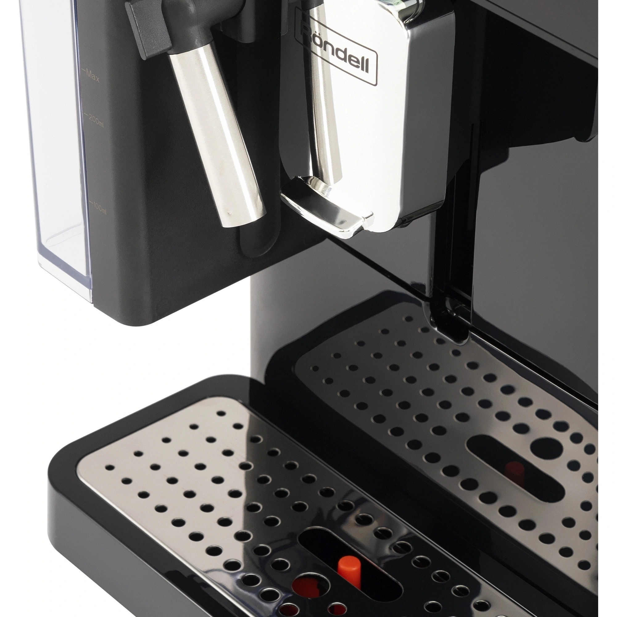 Кофемашина Rondell RDE-1116 мощностью 1400 Вт готовит напитки на основе кофе и молока (эспрессо, латте, капучино, макиато, лонг блэк, ристретто, лунго, флэт уайт) и подогревает воду для чая. В качестве сырья подходит молотый и зерновой кофе, который измельчает встроенная кофемолка с регулировкой степени помола (девять уровней). Объем съемного бака для воды — 1,3 л, резервуара для зерен — 200 г. Рабочее давление насоса — 19 бар.