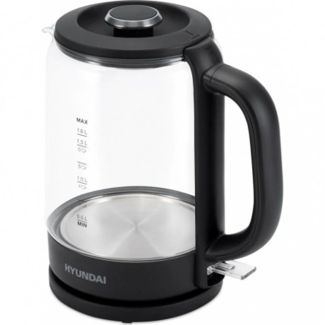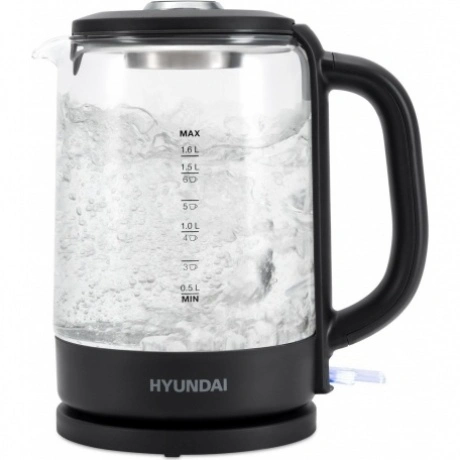 Hyundai HYK-G3402 – это эргономичный современный чайник со скрытым нагревательным элементом и минимальным временем кипячения. Устройство вмещает до 1.7 л жидкости за один раз. Его стенки выполнены из стекла, которое не только создаёт приятный декоративный эффект, но также помогает удерживать тепло. На один из боков чайника нанесена индикация налитого объёма, представленная в литрах и приблизительном количестве чашек. По ней удобно ориентироваться, если чаепитие запланировано на несколько персон. При этом пустым девайс включить невозможно – сработает система защиты. В конце каждого цикла данная модель выключается автоматически. Также Hyundai HYK-G3402 оборудован яркой индикацией, которая срабатывает, когда чайник активируется. Подставка устройства имеет 360-градусную конструкцию, так что чайник на неё можно ставить в любом положении. Прибор имеет минималистичный дизайн и интерфейс. Однако если в процессе его эксплуатации возникнут вопросы, ответы на них можно найти в инструкции, идущей в комплекте с Hyundai HYK-G3402. Она написана полностью на русском языке. Благодаря хорошей выдаваемой мощности нагревательного элемента 2200 Вт устройство за считанные минуты нагреет до состояния кипения даже полный предусмотренный объём. Крышка Hyundai HYK-G3402 легко снимается по щелчку и не люфтит в закрытом состоянии. Все детали чайника точно подобраны и с точностью собраны.