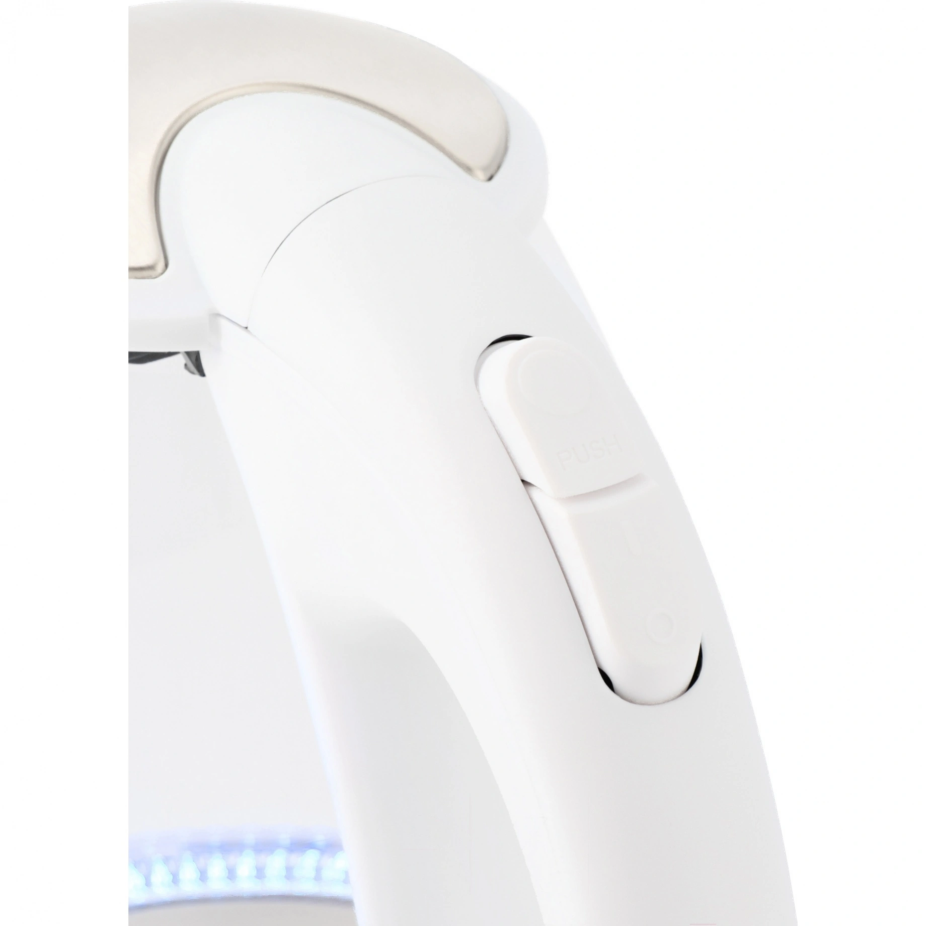 Прозрачный электрический чайник Hyundai HYK-G3805 не только в считанные минуты согреет значительный объём воды, но ещё и выгодно впишется в любой интерьер благодаря оригинальному и минималистичному дизайну. Девайс способен вместить до 1.7 л жидкости. Обычно подобного объёма достаточно, чтобы заварить тёплые напитки сразу на несколько человек. С помощью предусмотренных 2200 Вт мощности происходит это крайне быстро. Корпус Hyundai HYK-G3805 выполнен, по большей части, из боросиликатного стекла. Этот материал отличается выдающимися теплоизоляционными характеристиками и прозрачен, поэтому на стенки нанесена градация, по которой можно с лёгкостью судить о том, насколько наполнен чайник. Дно и подставка Hyundai HYK-G3805 сделаны из лёгкого, прочного и надёжного пластика. В качестве индикатора включения и работы в данной модели служит подсветка дна. Если она активирована, значит, Hyundai HYK-G3805 работает. Без воды он кипятить жидкость не может, срабатывает система, защищающая прибор от перегрева. Крышка Hyundai HYK-G3805 удобно открывается по щелчку одной кнопки, а в носик девайса установлен эргономичный фильтр, препятствующий попаданию влаги в сторонние ёмкости.