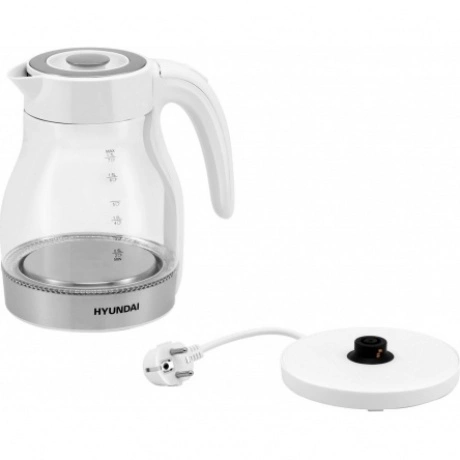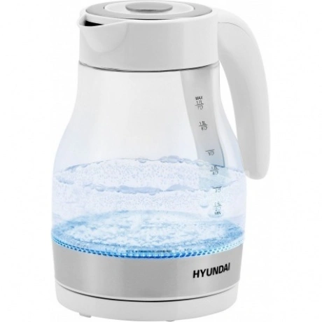 Чайник Hyundai Kettle Hyundai HYK-G3802 – эффектная модель, пользующаяся достаточно большой популярностью. Колба из термостойкого стекла абсолютно прозрачная, через нее можно наблюдать за процессом закипания воды. По нижнему краю корпуса расположена светодиодная подсветка нежного голубого оттенка, которая превращает танцующие пузырьки в незабываемое зрелище, за которым можно наблюдать часами. Скрытый нагревательный элемент снижает уровень образования накипи. Крышка оборудована автоматической блокировкой, что обеспечивает безопасность в процессе использования. Вытянутый носик направляет струю четко в чашку и исключает разбрызгивание горячей жидкости. Платформу можно поворачивать на 360 градусов и за удобную ручку снимать чайник с платформы.