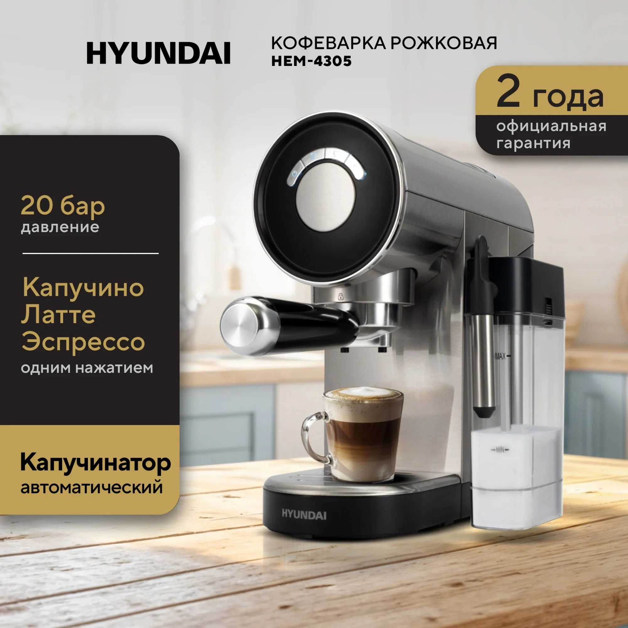 Отзывы о товаре Кофеварка рожковая Hyundai HEM-4305 1350Вт серебристый/черный