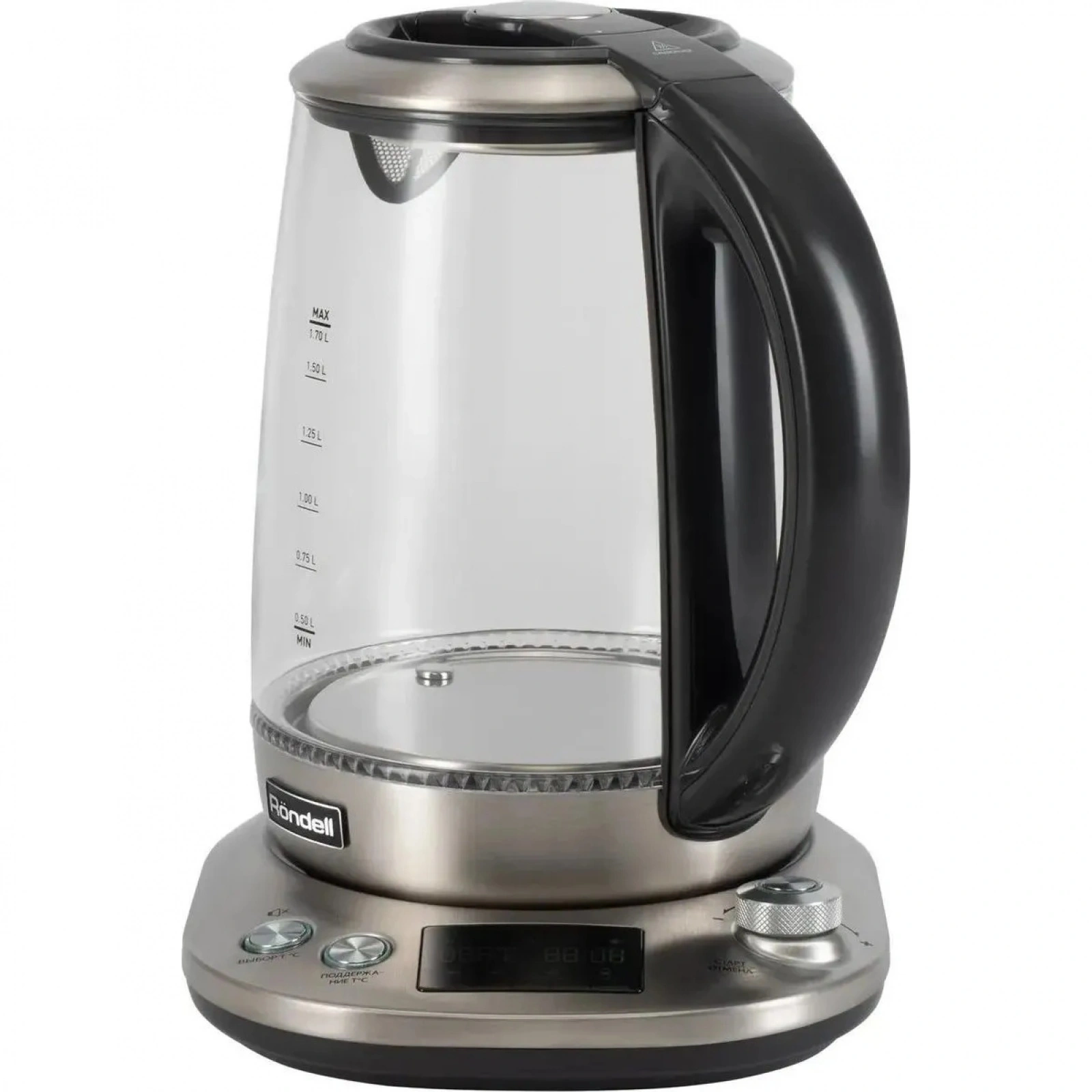 Многофункциональность и современный дизайн электрического чайника RDE-1003 оценят даже самые взыскательные покупатели. Благодаря максимальной мощности в 2200 Вт он вскипятит до 1.7 л воды за считаные минуты. Прибор имеет электронную базу с большим LCD-дисплеем, с помощью которого вы сможете выбрать один из шести автоматических режимов для приготовления напитков или отрегулировать температуру воды от 40° до 100° с шагом в 1°. Корпус чайника выполнен из термостойкого стекла и декорирован стильными элементами из нержавеющей стали. Красивая подсветка делает использование устройства особенно приятным. Благодаря продуманной конструкции чайник поворачивается на 360° при установке на базу. Следить за уровнем воды помогает специальная шкала, нанесенная на стенку стеклянного корпуса. Чайник оснащен сертифицированным английским контроллером STRIX, который гарантирует 15 000 циклов кипячения и продлевает срок службы устройства в 5 раз. В приборе продумана каждая деталь! Например, наливать воду в чайник можно через специальное открывающееся отверстие в крышке. При желании крышку прибора можно снять полностью. Устройство также имеет несколько особенных функций: поддержания температуры на протяжении двух часов, памяти (устройство запоминает и воспроизводит последнюю настройку температуры), а также «спящий режим», когда чайник полностью отключается через 20 минут после последнего включения. В случае необходимости вы можете остановить кипячение или убрать звуковые сигналы при помощи соответствующих кнопок. Фильтр от накипи из нержавеющей стали, расположенный в носике чайника, легко снять и промыть. Чайник оснащен защитой от перегрева и автоматически отключается при закипании или отсутствии в нем воды. Купите чайник RDE-1003 и подарите себе непревзойденный уровень комфорта!