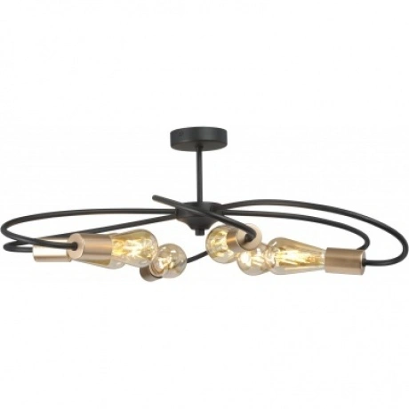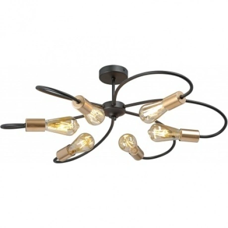 потолочная люстра в стиле лофт с шестью лампочками e27 мощностью до 40вт каждая. металлический каркас чёрного матового цвета, ширина конструкции 77 см. подходит для помещений до 18м?, напряжение 220в. тип крепления — планка, степень защиты ip20. гарантия от 1 до 5 лет в зависимости от продавца. теплый белый свет.