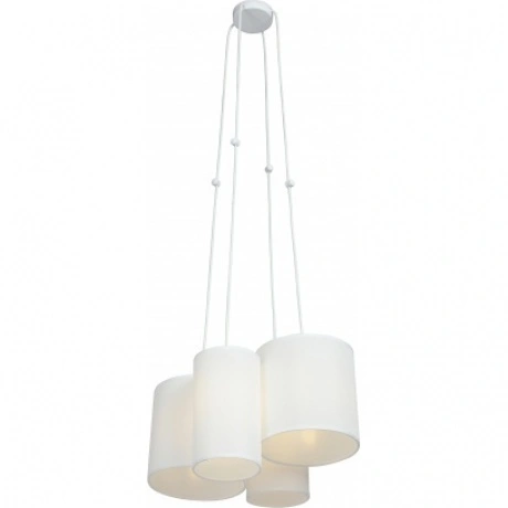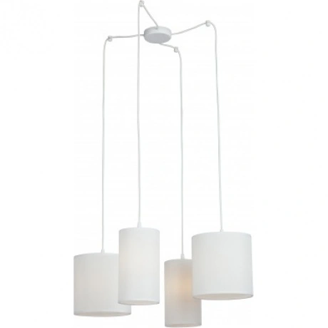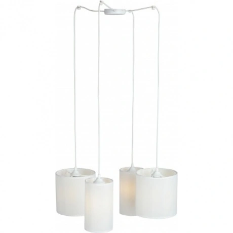 люстра v3089-0/4s vitaluce выполнена в стиле арт-деко, имеет 4 лампы с цоколем e27 и максимальной мощностью 40 вт, корпус из металла с текстильными абажурами, высота до 123 см, диаметр 40 см, подходит для освещения площадью до 12 кв.м, белого цвета, стильная и функциональная подвесная люстра.