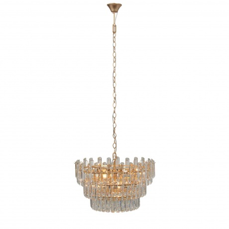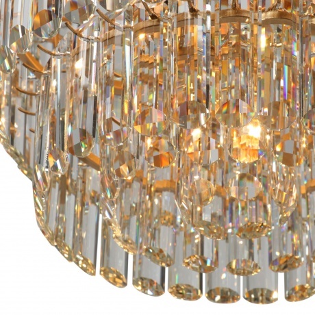 подвесная люстра vitaluce v53440-8/11 оснащена 11 лампами с цоколем e14 и максимальной мощностью 40 вт каждая, плафоны выполнены из хрусталя, корпус золотого цвета, высота 165 см, ширина 68.5 см, вес 28 кг, подходит для освещения помещений до 33 кв.м.