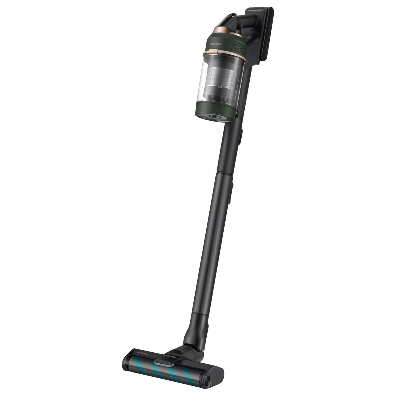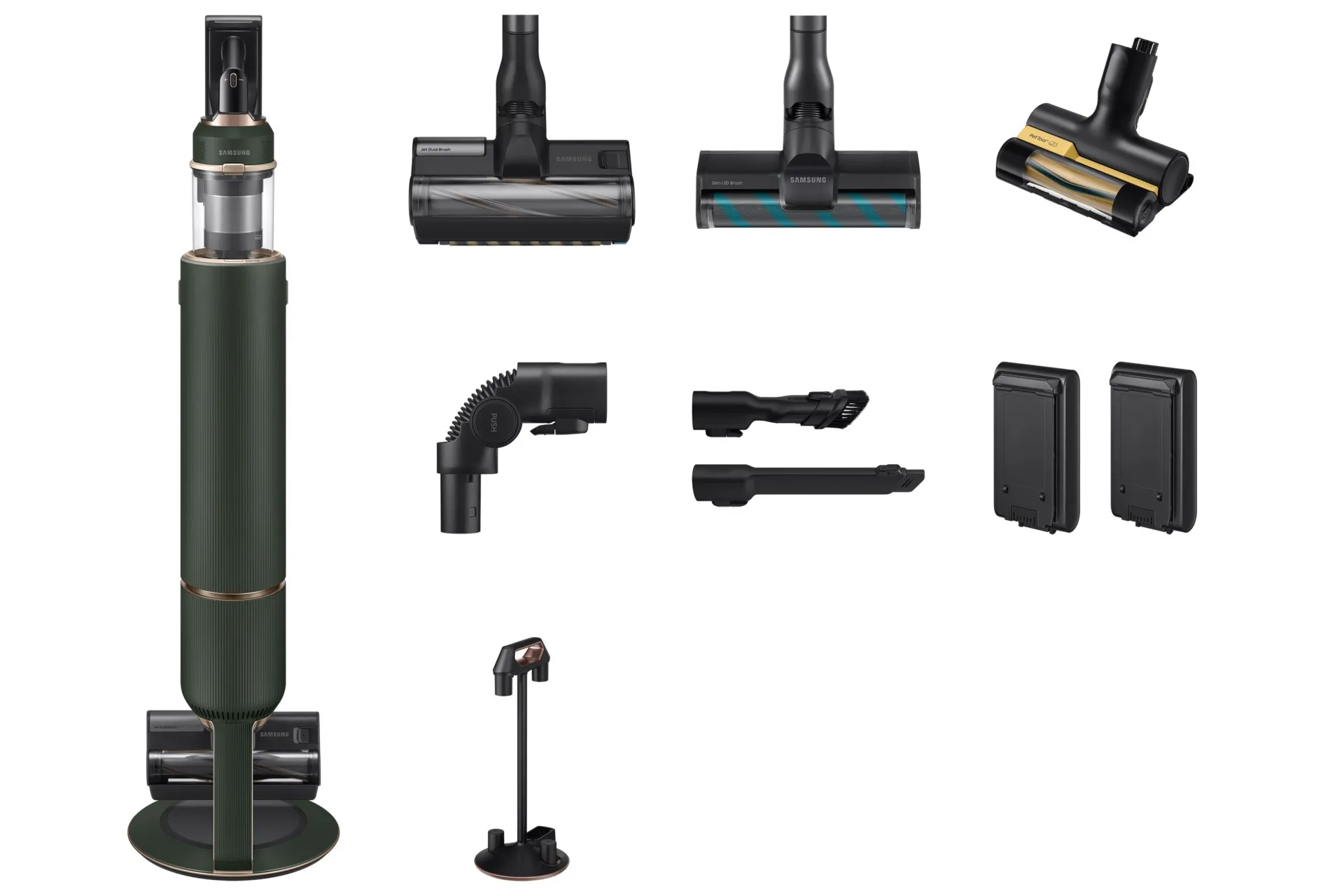 BESPOKE Jet Plus — мощный (210 Вт) и легкий пылесос (1,44 кг) в изумрудном цвете. Оснащен станцией очистки, моющимся пылесборником 0,5 л и LCD-дисплеем. До 120 минут работы с двумя аккумуляторами. В комплекте щетки Jet Dual, Slim LED, насадка Pet Tool + и другие аксессуары.