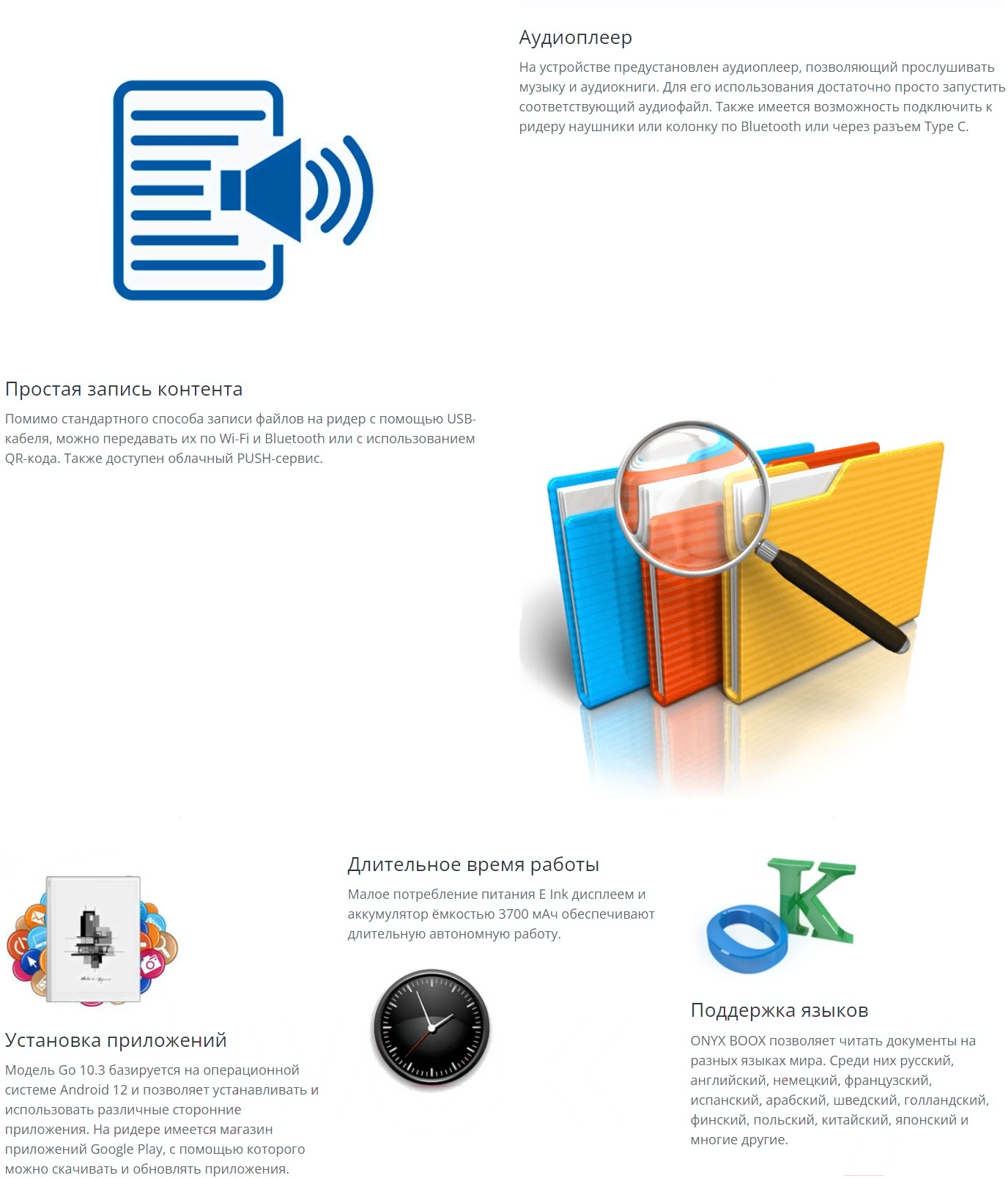 Электронная книга Onyx Boox Go 10.3 White - стоимость товара 50990 руб. в интернет-магазине КотоФото. Характеристики, фото и описание доступны на карточке товара. Купить товар можно на сайте онлайн или заказать по телефону 8(495)137-52-98 в Москве, а забрать в пункте самовывоза или оформить доставку на дом.