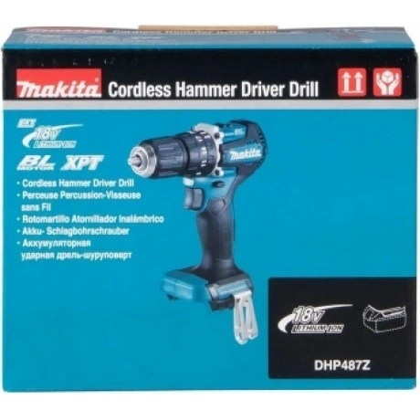 Аккумуляторная ударная дрель-шуруповерт Makita DHP487Z предназначена для сверления отверстий с ударным действием в кирпичной и каменной кладке. В режиме обычного (безударного) действия можно использовать инструмент в качестве шуруповерта, а также сверлить дерево, металл, керамику и пластик.