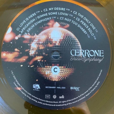 Главные хиты иконы диско Cerrone с симфоническим оркестром Канн!. Издание на двойном виниле янтарного цвета. Cerrone был музыкальной иконой в диско и за его пределами на протяжении пяти десятилетий. Disco Symphony переосмысливает 21 из его величайших хитов, исполненных с Симфоническим оркестром Канн под управлением легендарного Рэнди Кербера, также с участием Cerrone на барабанах и дополнительной группы на басу, гитарах и клавишных. Слияние силы электронной музыки, грува диско и лиризма и уникального прикосновения симфонического оркестра, в отношении клубной культуры, в которой родился Cerrone.