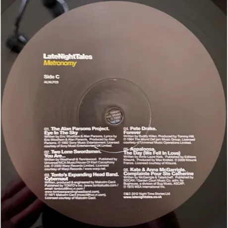 OutKast–Prototype, Tweet–Drunk, SA-RA Creative Partners–Cosmic Ball, Chick Corea– El Bozo (Part 1), Dr Octagon*–Blue Flowers, Metronomy–Hypnose (Exclusive Cover Version), Alessi Brothers*–Seabird, Autechre–Fold4,Wrap5, Mick Karn–Weather The Windmill, The Alan Parsons Project–Eye In The Sky, Two Lone Swordsmen–You Are..., Tontos Expanding Head Band–Cybernaut, Pete Drake–Forever, Appaloosa (2)–The Day (We Fell In Love), Kate & Anna McGarrigle–Complainte Pour Ste Catherine, Herman Dune*– Winners Lo