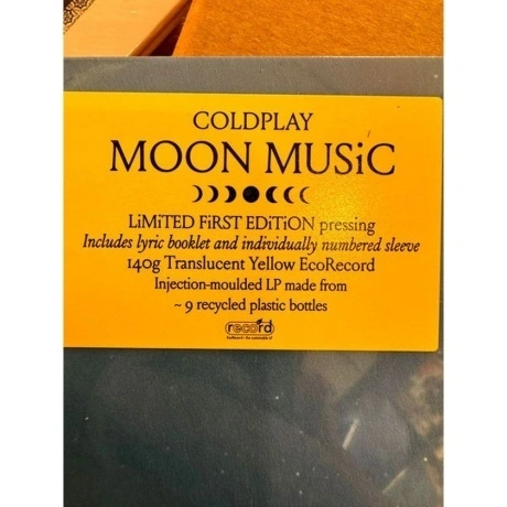 Moon Music - это 10-й альбом крупнейшей стадионной рок-группы нового тысячелетия. Группа намекнула, что Moon Music станет продолжением их серии Music Of The Spheres и тура, последний из которых продлится до 2025 года, объединив таким образом два цикла альбомов. Физические форматы нового альбома Coldplay являются новаторскими в своем подходе к экологичности. Это будет первый альбом, выпущенный в виде экозаписи весом 140 г, каждая копия которого изготовлена из переработанных ПЭТ-пластиковых бутылок, что обеспечивает сокращение выбросов CO2 в процессе производства на 85% по сравнению с традиционным винилом. Эти издания на компакт-дисках станут первыми в мире, выпущенными на EcoCD, они на 90% состоят из переработанного поликарбоната, получаемого из отходов после потребления, что обеспечивает сокращение выбросов CO2 на 78%/кг.