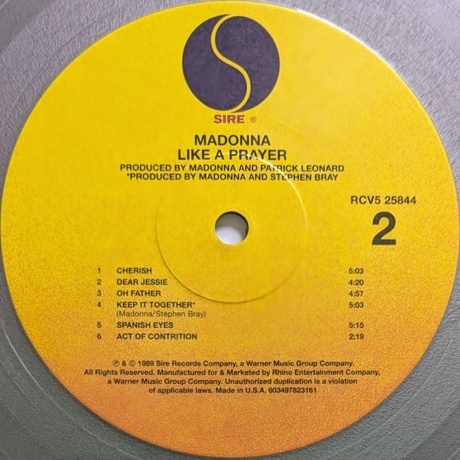 Переиздание к 35-летию Like a Prayer, четвёртого студийного альбома Мадонны, выпущенного первоначально 21 марта 1989 года. Лимитированное издание на серебряном виниле.. После своего выпуска Like a Prayer получил всеобщее признание, достигнув вершин чартов в 20 странах, и был сертифицирован RIAA как четырежды платиновый в США. По всему миру было продано более 15 миллионов копий. С альбома было выпущено шесть синглов: заглавный трек стал седьмым хитом Мадонны номер один в американском чарте Billboard Hot 100, в то время как Express Yourself и Cherish оба достигли второго места, а Keep It Together вошел в десятку лучших.