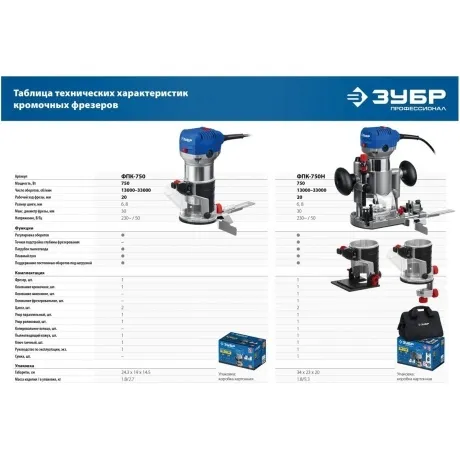 Описание товара Фрезер кромочный ЗУБР 750 Вт, Профессионал (ФПК-750)