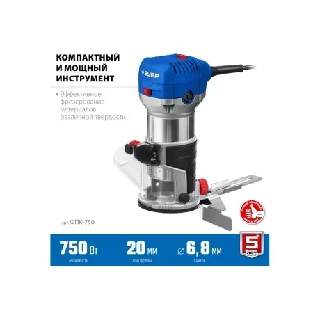 Фрезер кромочный 750 вт ЗУБР Профессионал ФПК-750 применяется для фрезерования (в т.ч. фигурного, по шаблону, по радиусу) заготовок из дерева, древесно-стружечных плит, пластмасс и металла (при установке соответствующих фрез). Фрезер кромочный ЗУБР – компактное изделие для удобства обработки кромок. Достаточная мощность, два размера цанг для использования разных типов фрез. Электронные системы позволяют использовать изделие с полной отдачей и быть уверенным в своей безопасности.