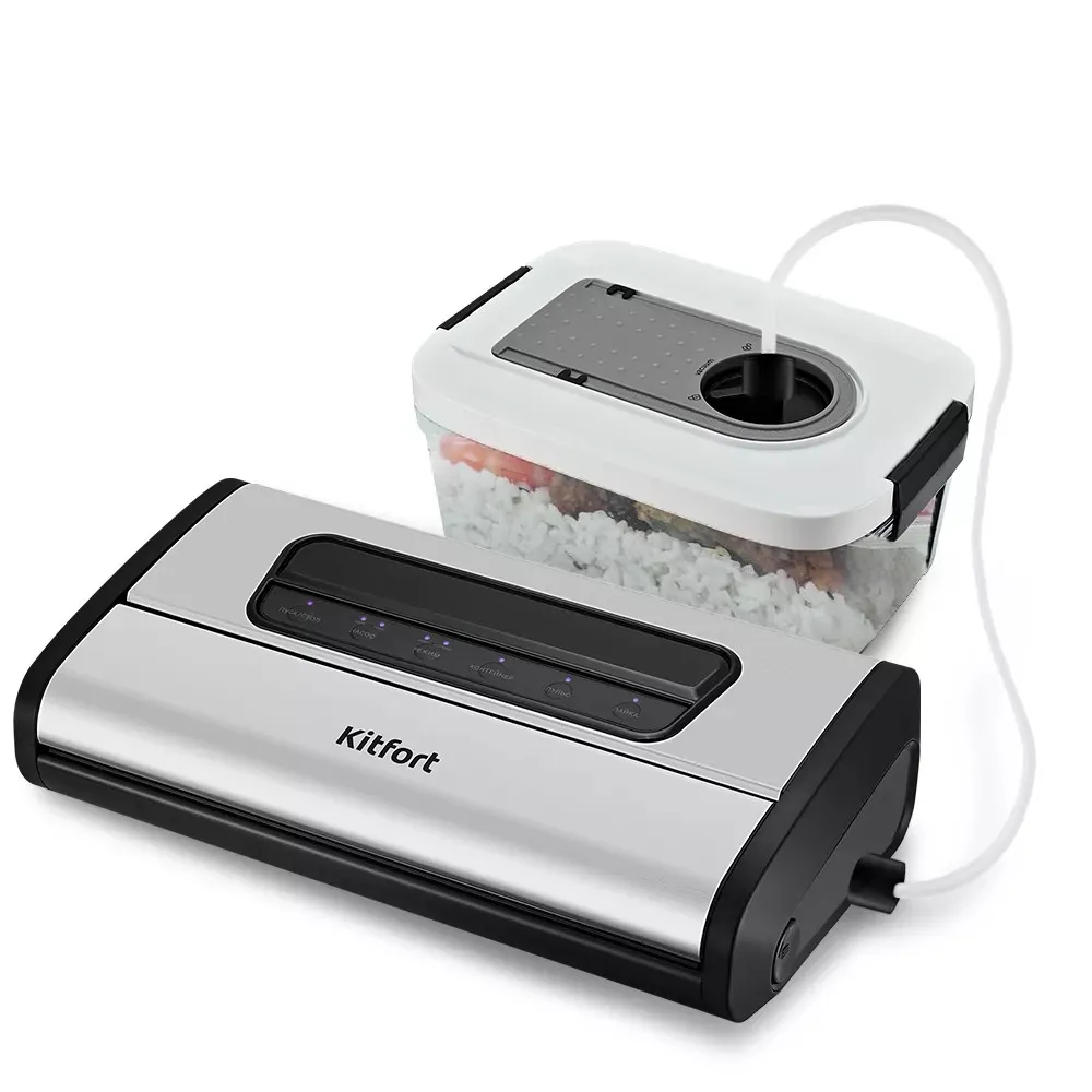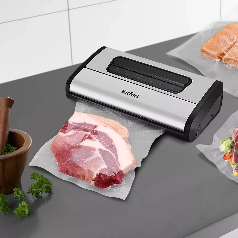 Вакууматор Kitfort КТ-1519 призван обеспечивать долгие сроки хранения ваших любимых продуктов. Продукты, упакованные под вакуумом, сохраняют свежесть и не портятся существенно дольше по сравнению с обычными условиями хранения.
