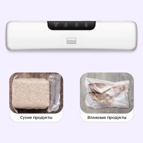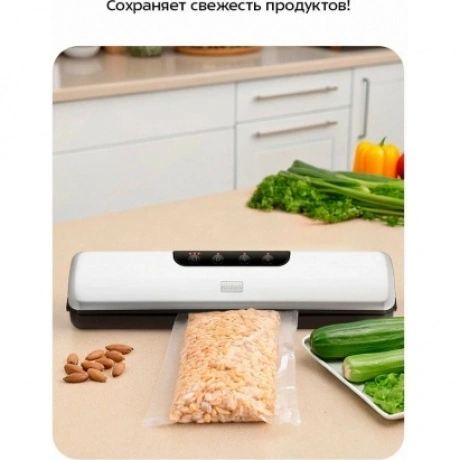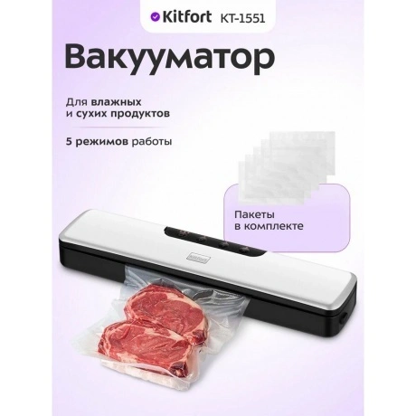 Вакууматор Kitfort КТ-1551 - современный прибор, призванный увеличить сроки хранения пищевых продуктов. Продукты, упакованные под вакуумом, сохраняют свежесть и не портятся существенно дольше по сравнению с обычными условиями хранения.