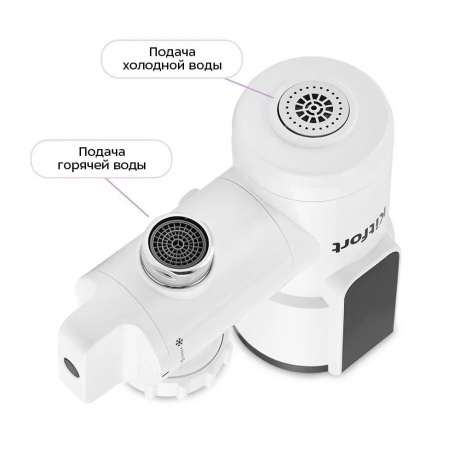 Проточный водонагреватель KT-6525 предназначен для быстрого нагрева холодной проточной воды. Водонагреватель отличается простотой монтажа: устройство крепится на смесителе вместо аэратора.