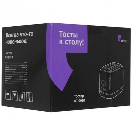 Тостер КТ-9910 предназначен для быстрого и равномерного поджаривания хлеба, что делает его отличным выбором для приготовления завтрака или перекуса. КТ-9910 станет незаменимым помощником на вашей кухне.