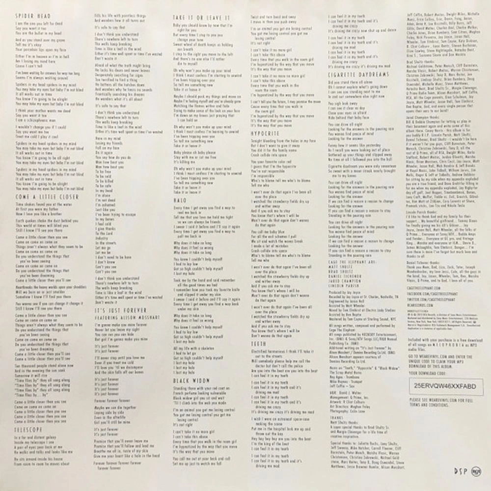 Spiderhead, Come A Little Closer, Telescope, It's Just Forever, Take It Or Leave It, Halo, Black Widow, Hypocrite, Teeth, Cigarette Daydreams