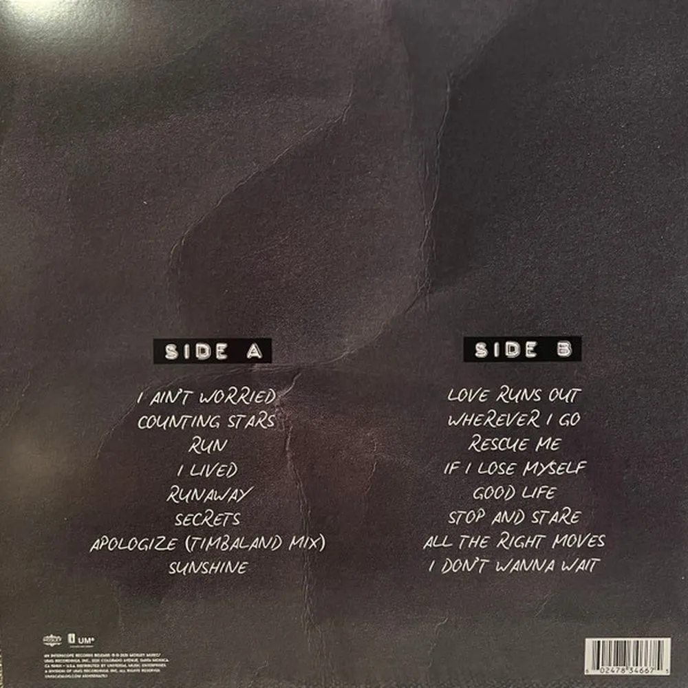I Ain't Worried, Counting Stars, Run, I Lived, Runaway, Secrets, Apologize (Timbaland Mix), Sunshine, Love Runs Out, Wherever I Go, Rescue Me, If I Lose Myself, Good Life, Stop And Stare, All The Right Moves, I Don't Wanna Wait