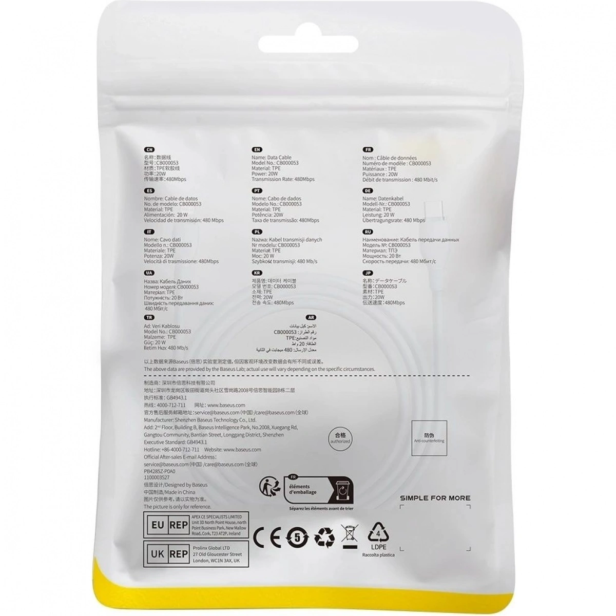 Кабель рассчитан на более чем 20 000 циклов изгибов и оснащен термостойким 8-контактным разъемом, что обеспечивает высокую прочность и безопасность эксплуатации. Он совместим с устройствами Apple, включая iPhone 14, iPhone 13, iPhone 12, iPad Pro и AirPods Pro. Кроме того, кабель поддерживает высокую скорость передачи данных до 480 Мбит/с.