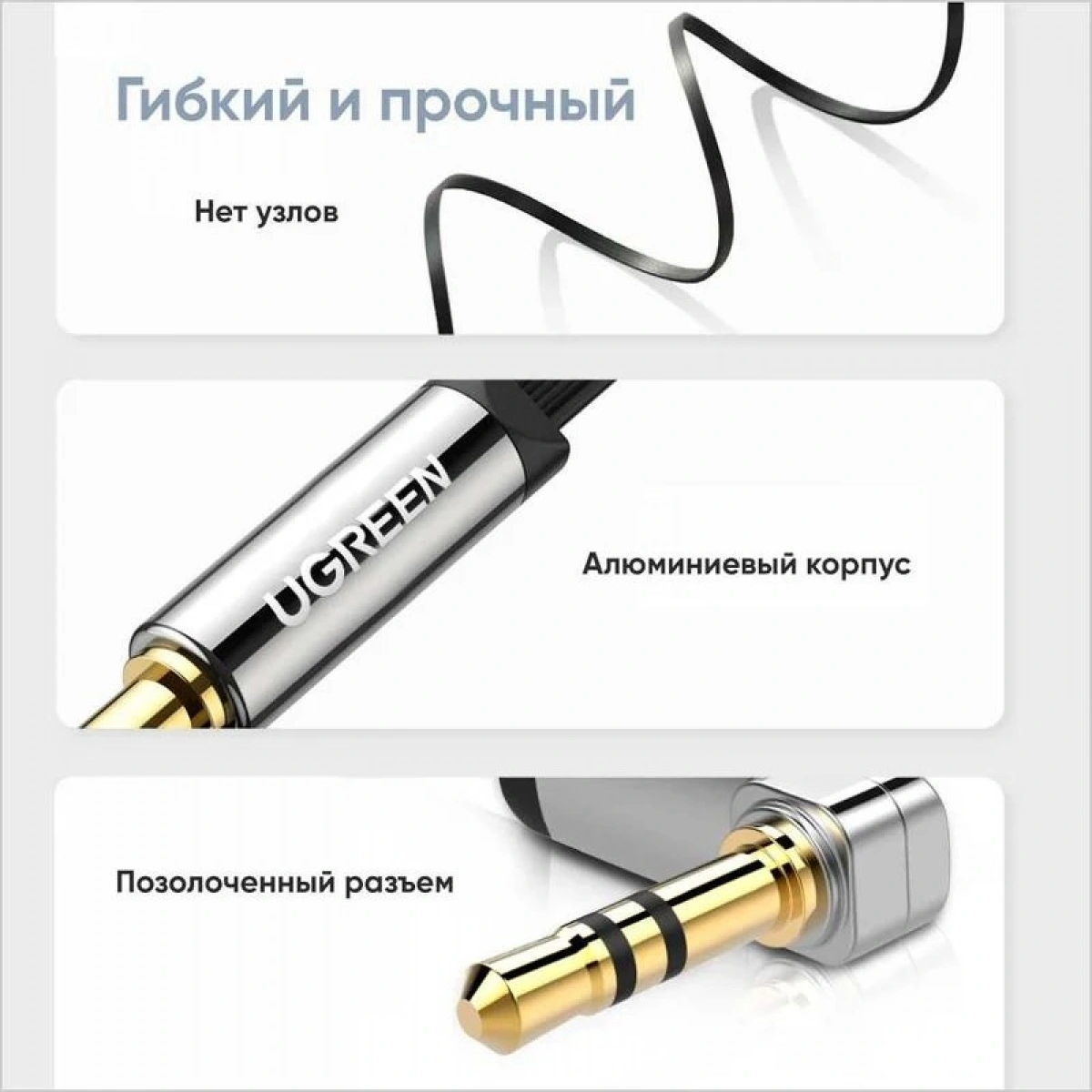 С этим кабелем вы запросто сможете подключать свой смартфон, iPod, iPad к вашей домашней аудиосистеме, автомобильной аудиосистеме, портативному динамику, наушникам или любому другому аудио девайсу с разъемом 3,5 мм. При этом кабель имеет инновационный угловой дизайн, что позволяет подключать его к самым разным, в том числе труднодоступным, разъемам, без риска сломать коннектор или же разорвать оплетку. Кабель Ugreen AV119 позволит вам с комфортом наслаждаться звуком высокого качества в любом месте, будь то автомобиль, дом или даже пикник на природе.
