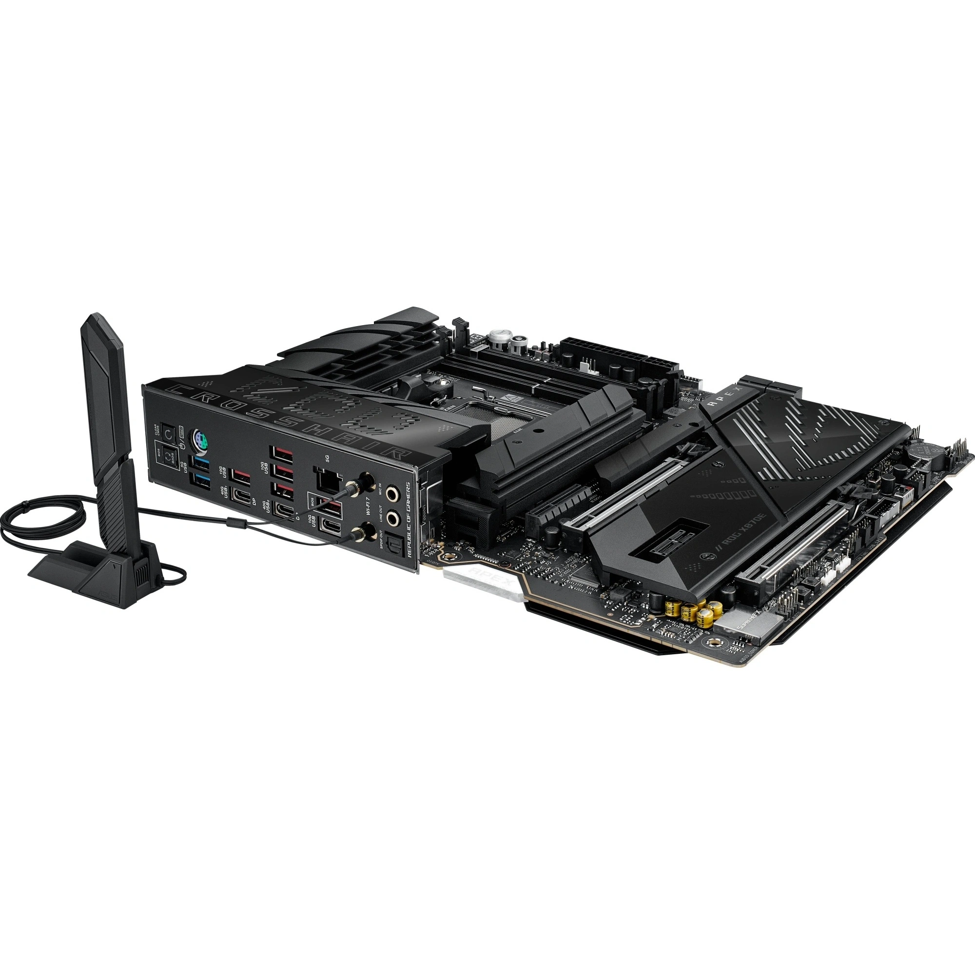 Система питания процессора (VRM) на этой плате спроектирована с колоссальным запасом прочности, что является визитной карточкой серии ROG. Мощная многофазная схема с использованием отборных силовых каскадов, дросселей и конденсаторов обеспечивает идеально стабильное и чистое напряжение даже при экстремальном разгоне самых энергоемких процессоров. Для питания CPU предусмотрены два усиленных 8-pin разъема, а массивные радиаторы, соединенные тепловой трубкой, эффективно охлаждают зону VRM, гарантируя надежность при длительных нагрузках и в условиях бенч-сессий с жидким азотом.