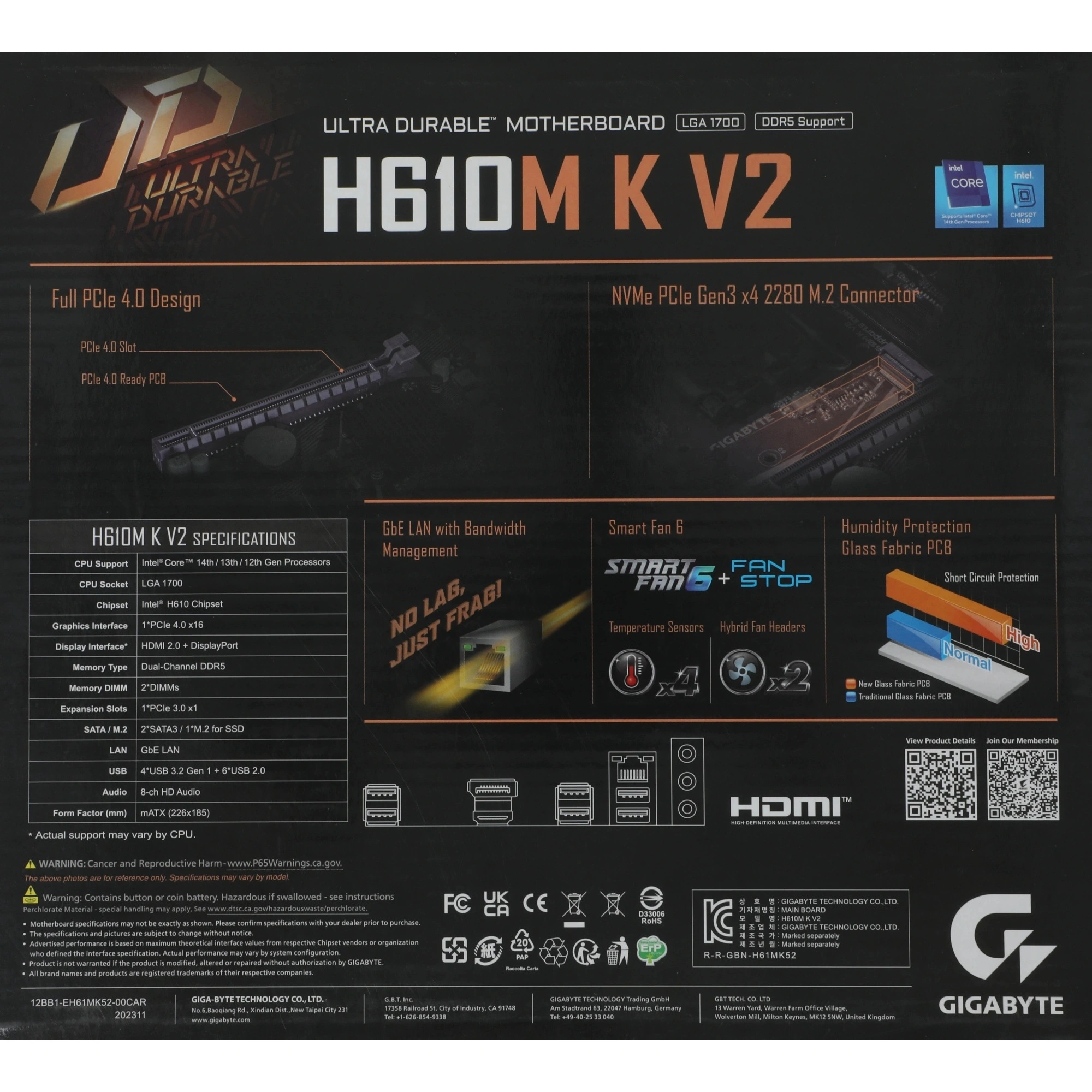 Отзывы о товаре Материнская плата Gigabyte H610M K V2