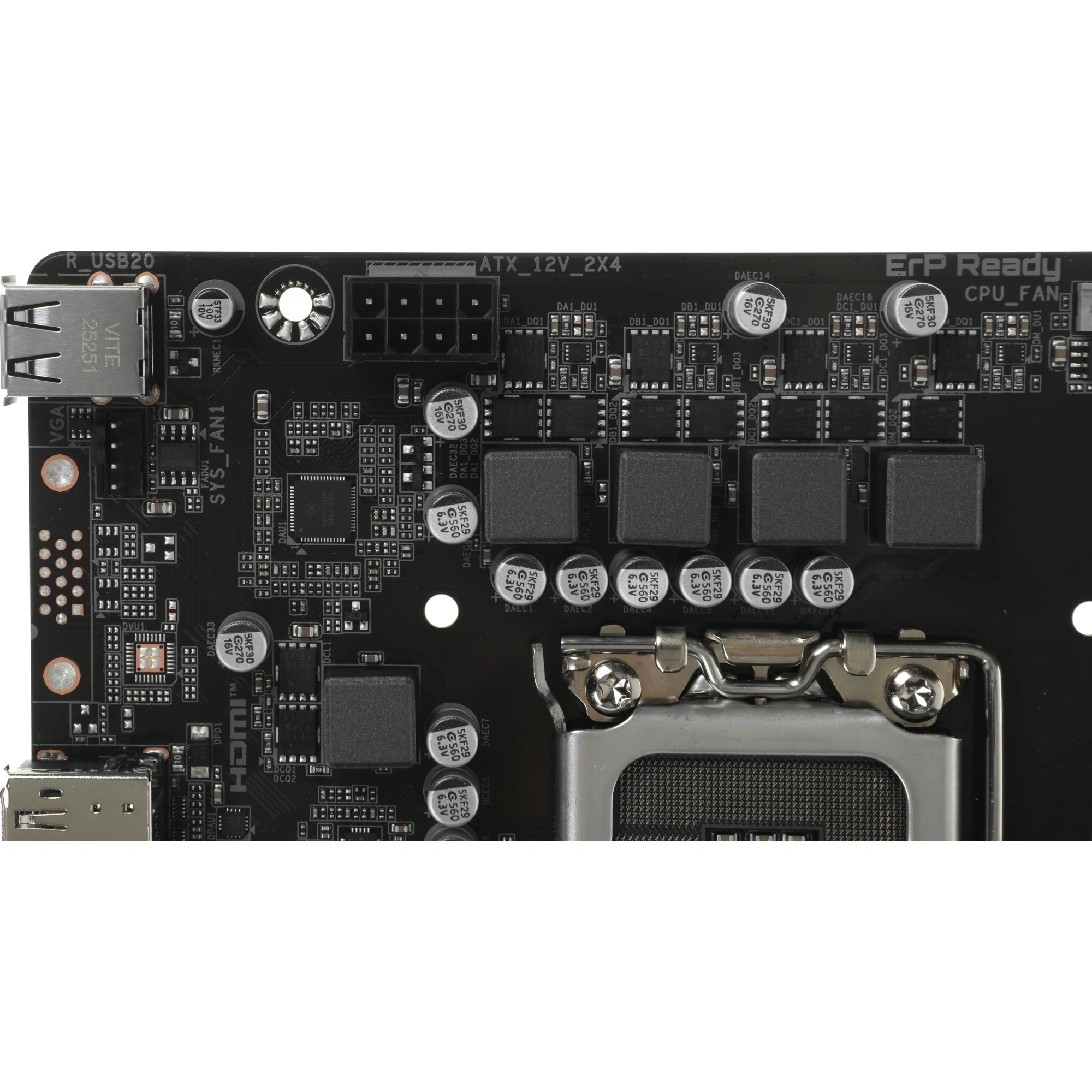 Основой платы служит чипсет Intel H610, установленный на сокет LGA1700, что гарантирует совместимость с современными процессорами Intel. Чипсет H610 предлагает базовый, но достаточный набор функций для большинства повседневных задач, сознательно отказываясь от опций разгона для снижения итоговой стоимости. Форм-фактор Micro-ATX делает эту модель универсальным решением, позволяя установить ее как в стандартные, так и в более компактные корпуса, что особенно удобно при ограниченном пространстве на рабочем месте.