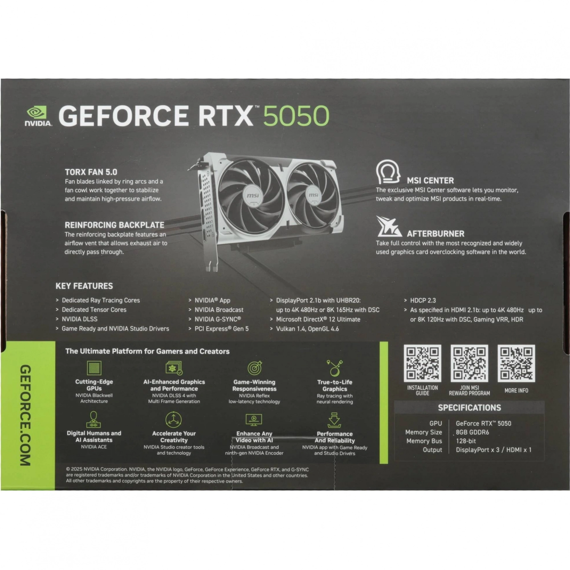 Видеокарта MSI RTX5050 VENTUS 2X OC 8GB GDDR6