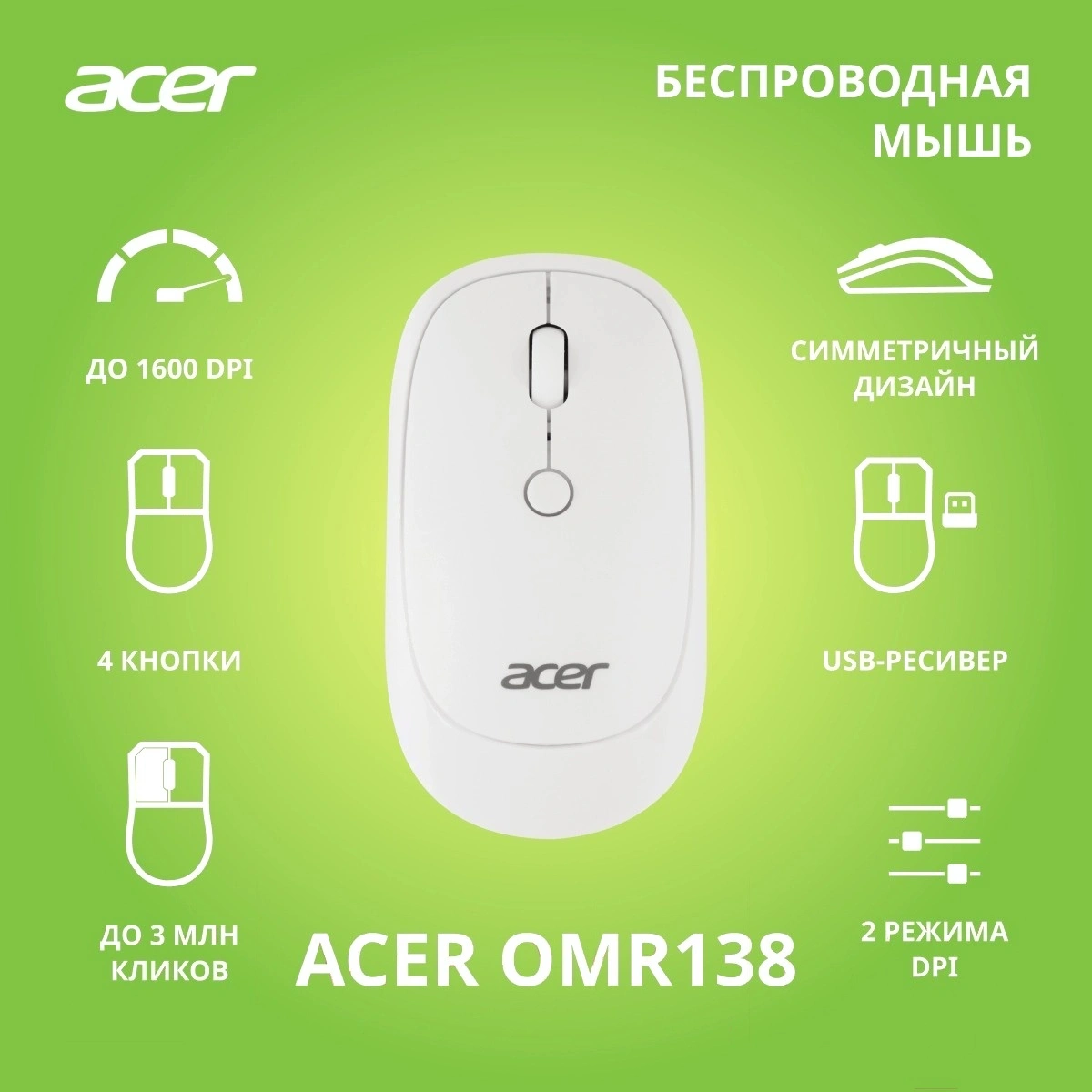 Отзывы о товаре Мышь Acer OMR138 (ZL.MCEEE.01L) белый