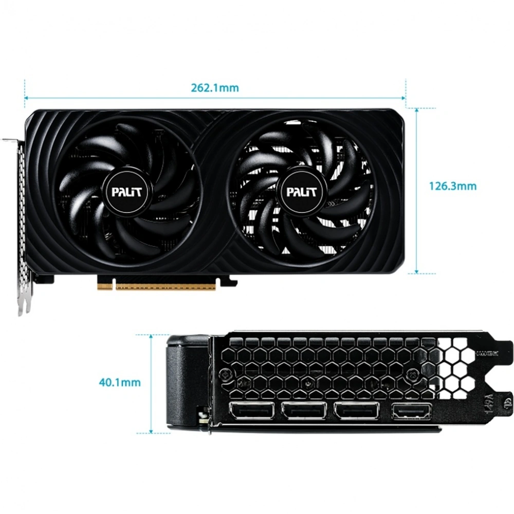 По портам заявлены HDMI 2.1b и три DisplayPort 2.1b, что удобно для современных мониторов с высокой герцовкой и для подключения нескольких экранов. Питание — один 8 pin, энергопотребление указано 145 Вт, а рекомендуемая мощность блока питания — 550 Вт, что обычно позволяет собрать сбалансированную систему без экстремальных требований к электрике. Габариты приводятся как 262.1×126.3×40.1 мм и двухслотовый формат, поэтому карта часто хорошо подходит под большинство mid tower и часть компактных корпусов.Важные нюансы перед покупкой